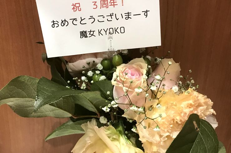 FACEBOOKで様子だけ見ていたのですが、KIKCAFEの3周年に花が届き、とても嬉しかったです。